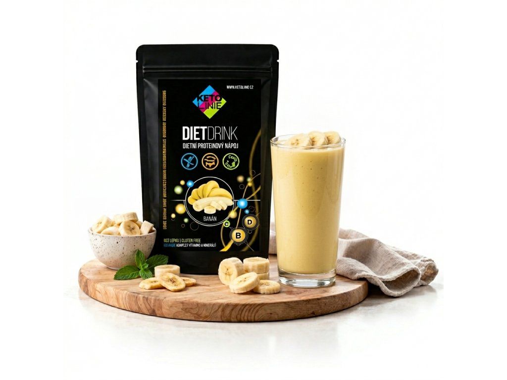 Proteinový nápoj s příchutí banán je tak přírodní, že "sedne" téměř každému. Tento lahodný proteinový nápoj Vám poslouží jako dieta, nebo i jako rychlá a vydatná svačinka na cesty, do kanceláře nebo na výlet do přírody. Vyzkoušejte tuto příchuť, pochutnáte si a určitě se k ní opětovně vrátíte. Díky vyváženému složení kvalitních surovin navozuje okamžitý pocit zasycení. Zaručí tak rychlé hubnutí či udržení Vaší hmotnosti bez pocitu hladovění. Potlačuje chuť k jídlu, aniž byste pociťovali ztrátu energie.
